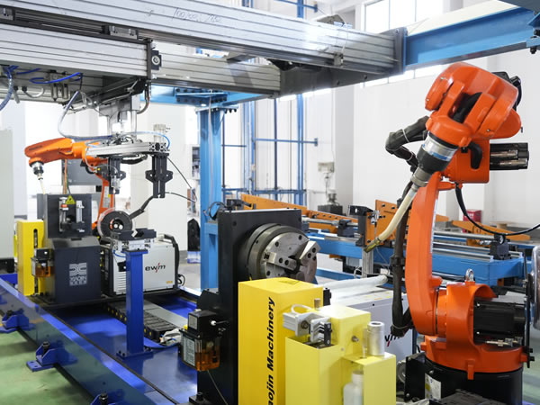 生產線涵蓋原料智能上料、鋼管成型焊接、Ω桿體成型加工、定尺數控鋸切、探傷檢測分選、組合式縮徑裝套、精密校位鉆孔、兩端油污清潔、機器人智能焊接、在線氣密性檢測及成品自動化輸出等核心工序。通過創新設計的生產架構,徹底解決傳統水漲錨桿生產環節分散、銜接不暢的行業痛點,全面替代人工干預操作,有效規避手工作業帶來的質量波動風險。以智能化技術為傳統制造產業賦能,樹立水漲錨桿生產領域的自動化生產新標準與高品質產品新典范